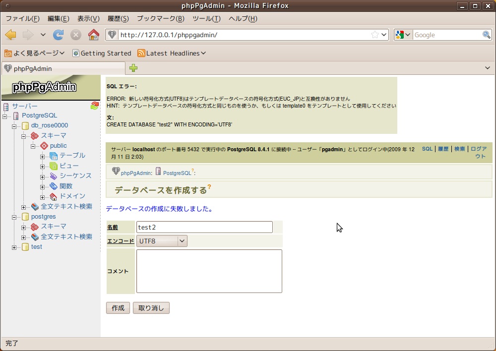 本日現在で、ubuntuのphppgadminからデフォルトデータベースを