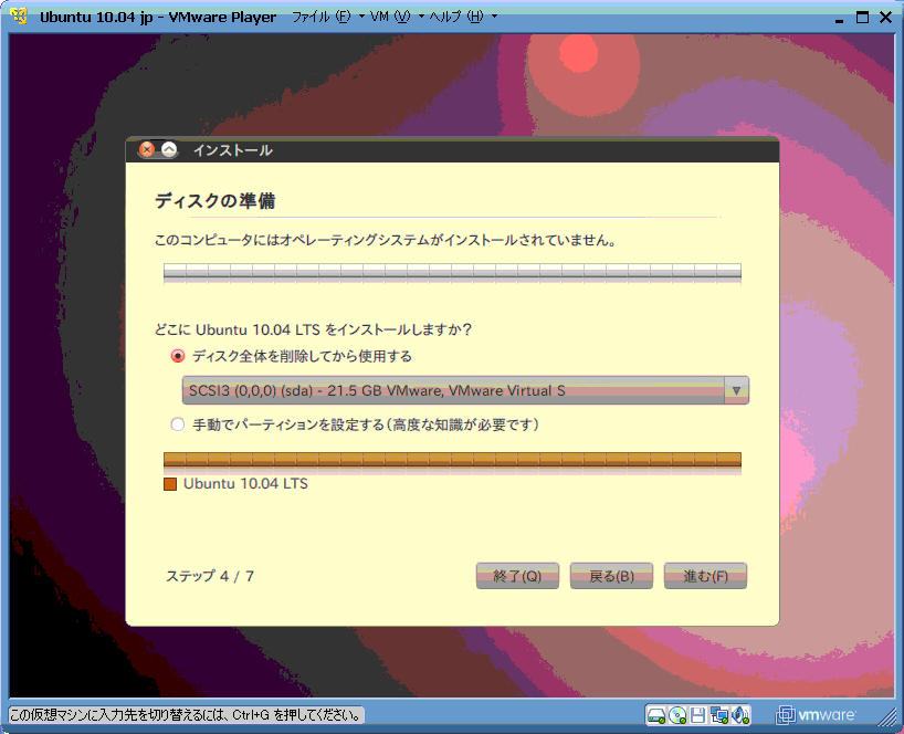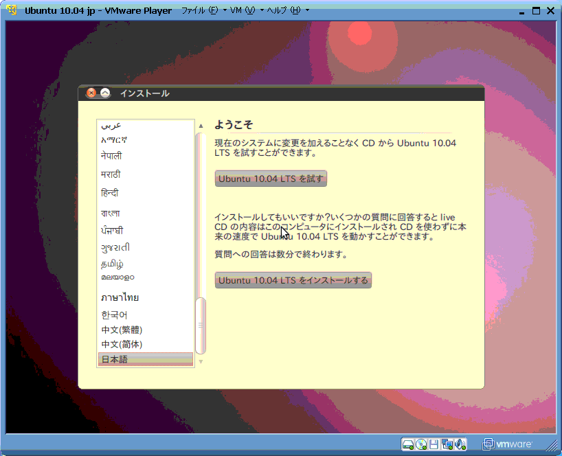 Ubuntu 10.04のインストールの説明をします。