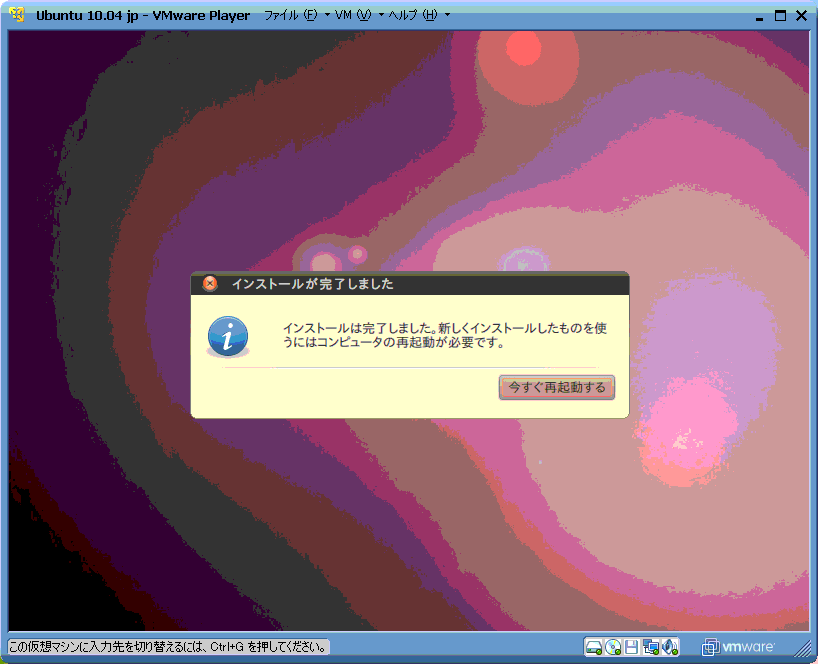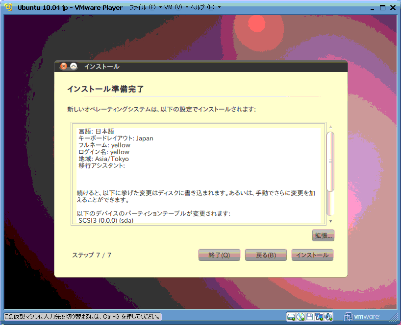 VMWarePlayer3.1の簡易インストールではパスワード入力などが可能