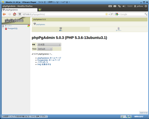 (7)でも書きましたが、phppgadminはデフォルト状態でローカルアクセス