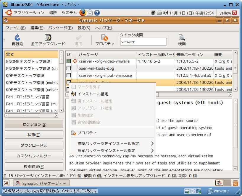 VMWareを利用した画面になっていますが、Linux専用マシンと比較すると