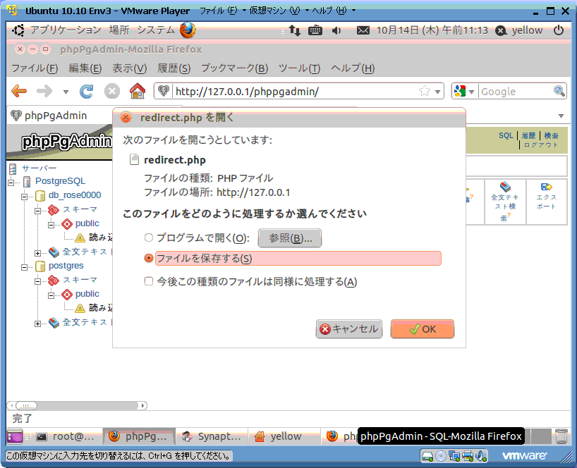 スキーマの下(public)をクリックすると、redirect.phpをダウンロードするダイアログが