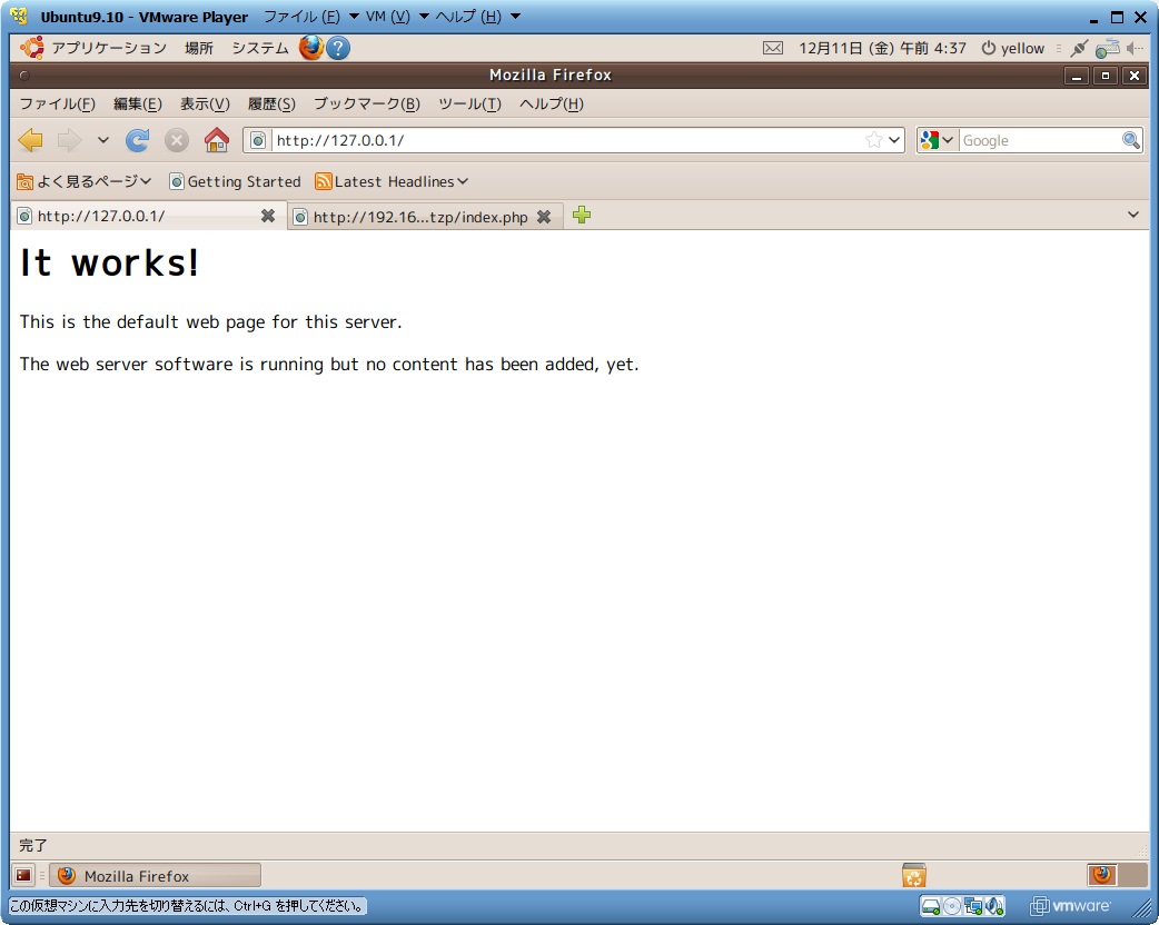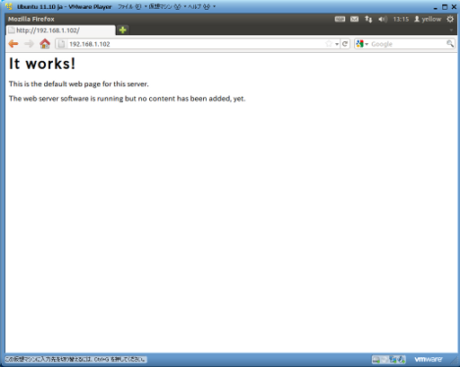 デフォルト状態では、Ubuntuのローカルアクセスにしか対応していません。 とりあえずローカルから確認します。 |