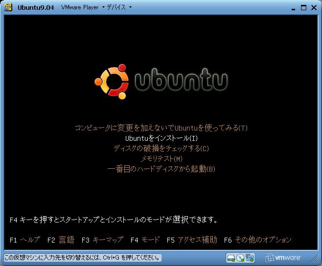 | 参考画面。 VMにおけるインストーラの起動画面です。 |