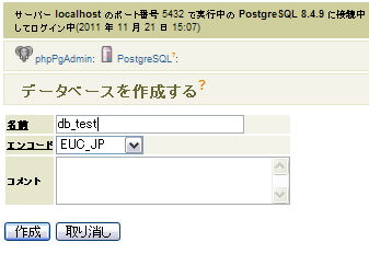 phppgadminを使用し、空の日本語データベースを作成します。