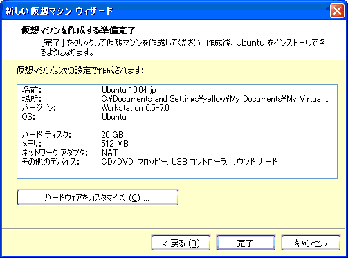 VMWarePlayer3.1の簡易インストールではパスワード入力などが可能