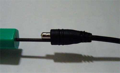 | まずロッドアンテナに取り付ける側端子のブーツを 外します。 端子の周りの隙間に細いドライバなどを差込み、 グルッと1周します。 接着(癒着?)が外れ、ブーツを移動できるように なります。 外れたらブーツをF型端子のほうに移動します。 反対の端にちょっとだけ接着剤を塗り、固定します。 |