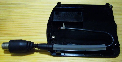 | フタを閉めて完成。 内部とブーツで2重に挟み込んでいるので、それなりに しっかりしています。 受信感度も上がったようで、正常に画像が出ました。 なお使用したエアホースに厚みがありすぎるようで、 若干ケースが浮いています。 ホースを切って調整すればいいのでしょうが、メンドウ なのと固定優先のため放置です。 |