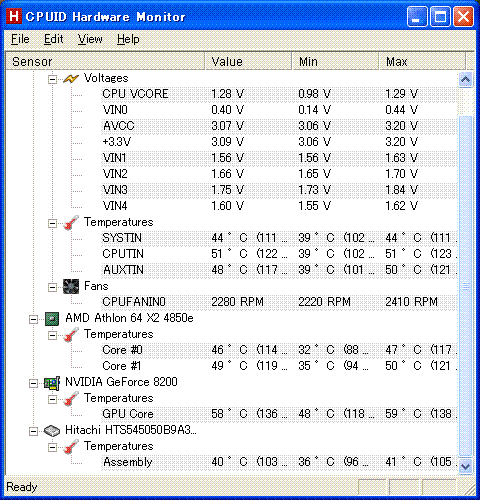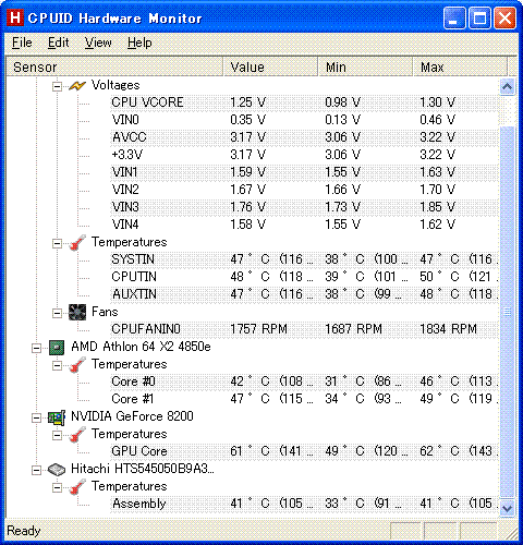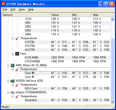 CPUIDのHardware Monitor(CPUIDが作者、Hardware Monitor