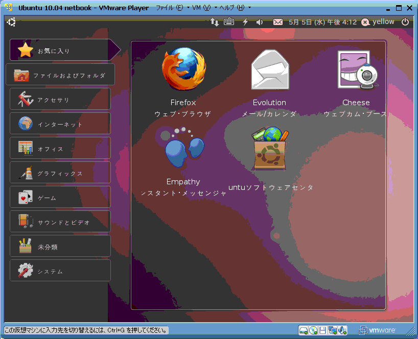 VMWareにUbuntu 10.04 netbook editionを導入してみました。