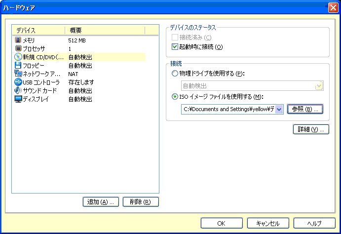 VMWare Playerで使用する場合は、こちらをご参照ください。