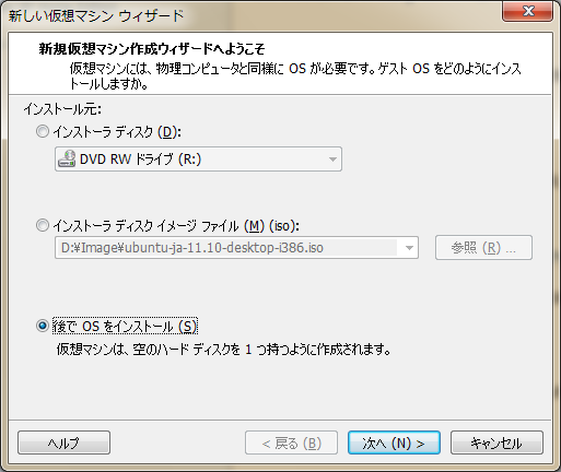 また簡易インストールを使用せず、「あとでOSをインストール」で導入しました。