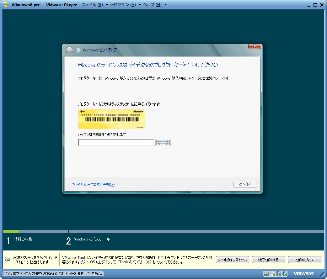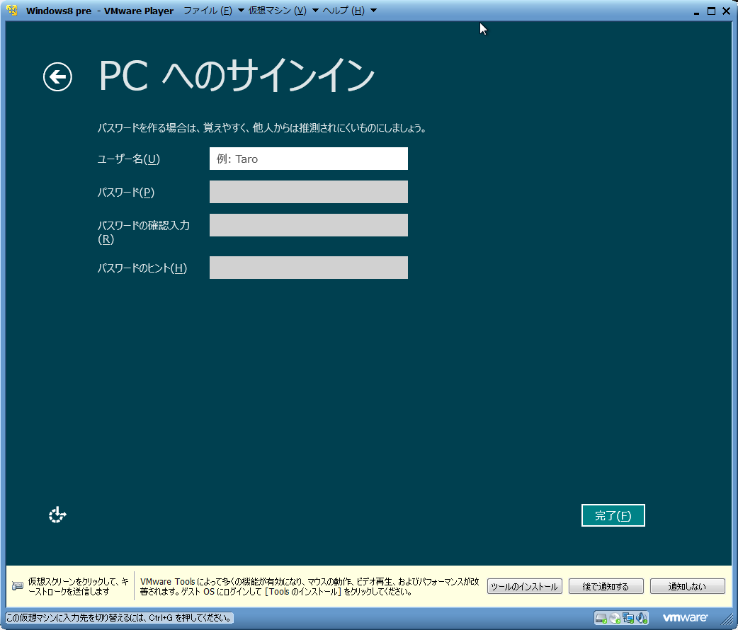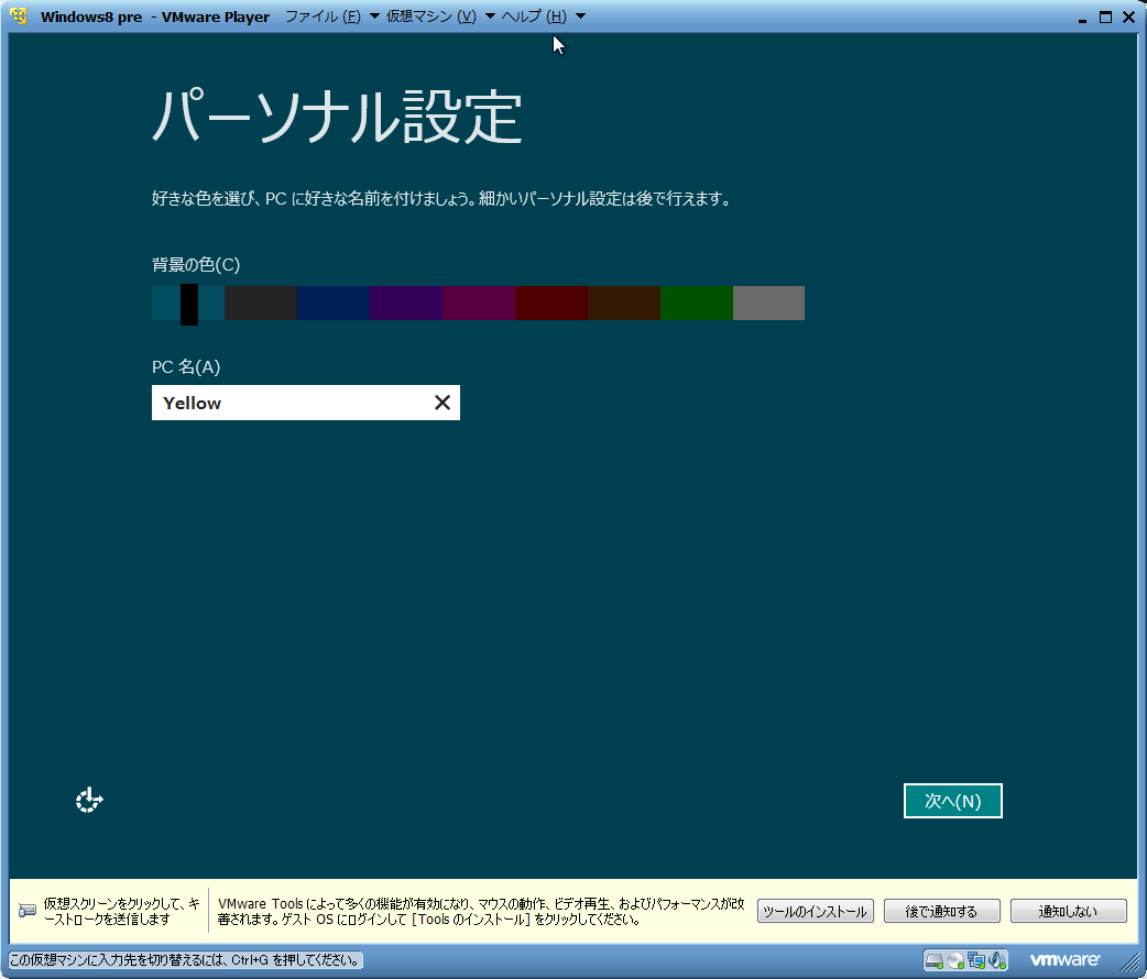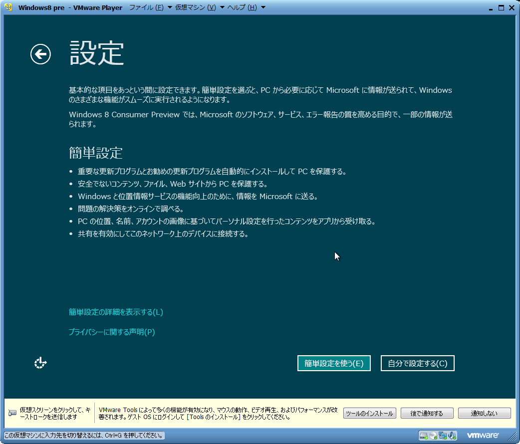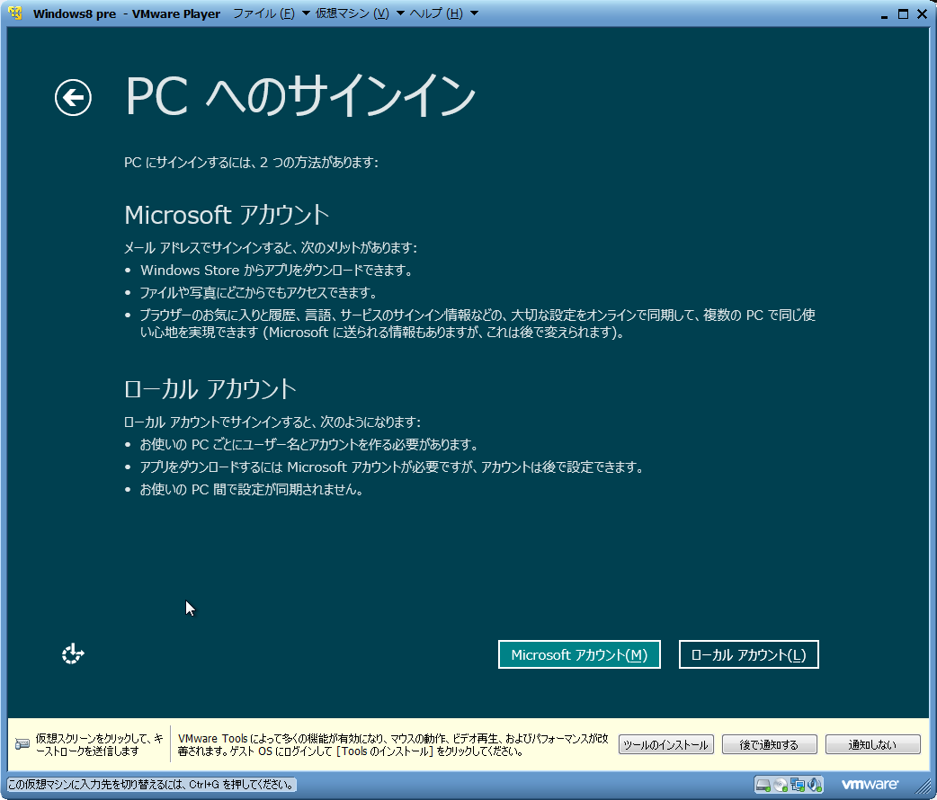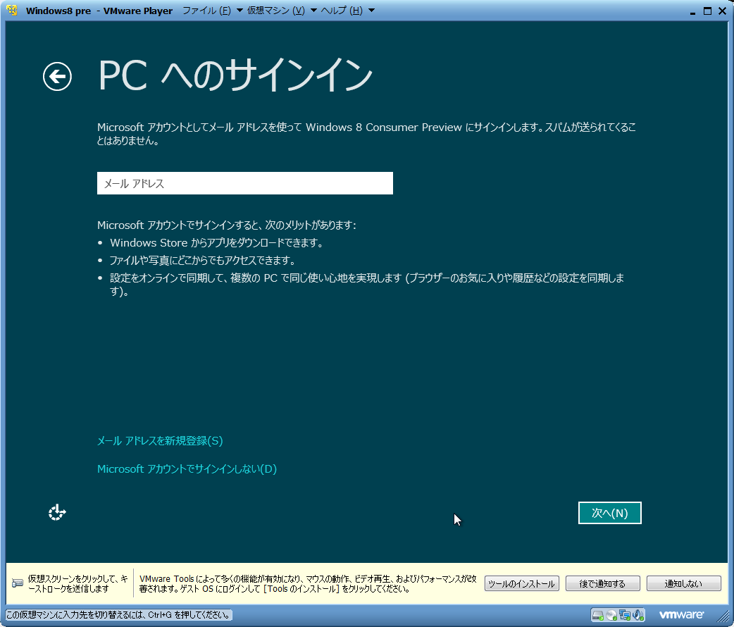 Win7の時と異なり、マイクロソフトへの登録などは不要です。