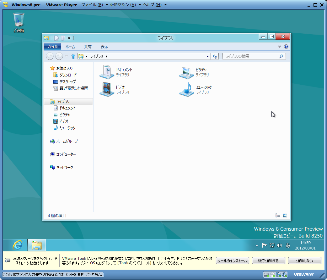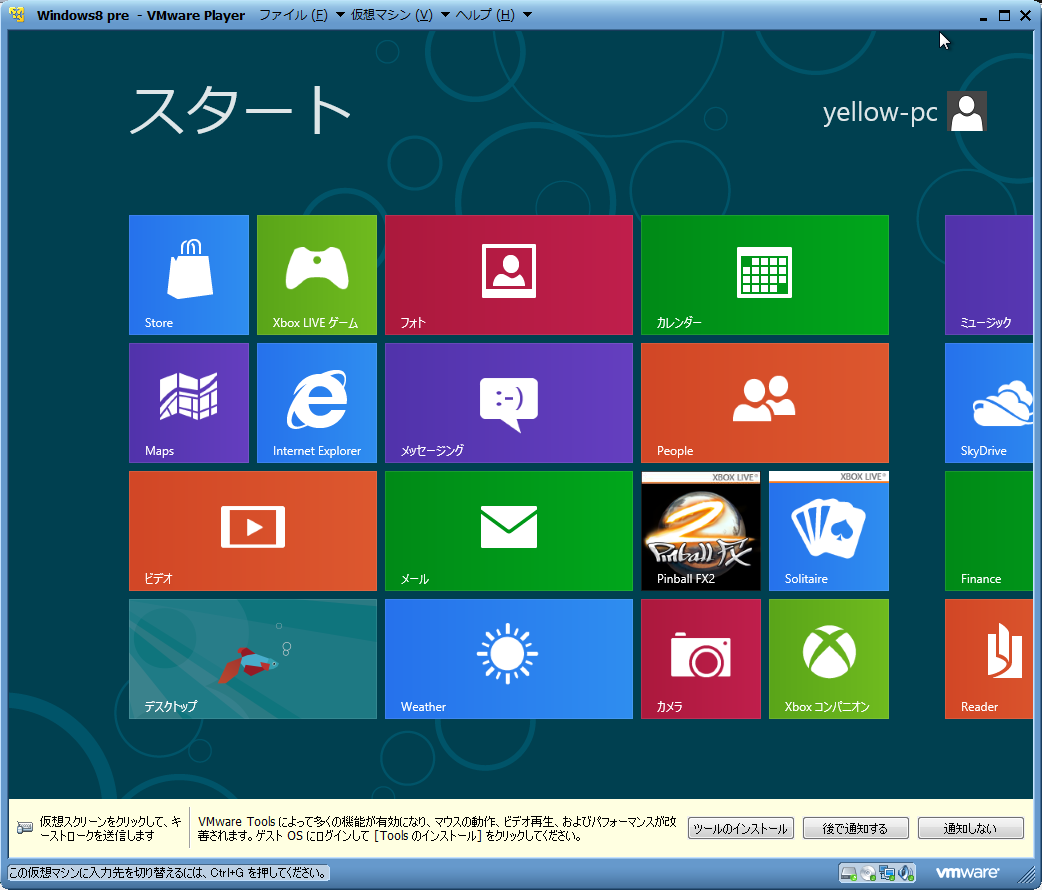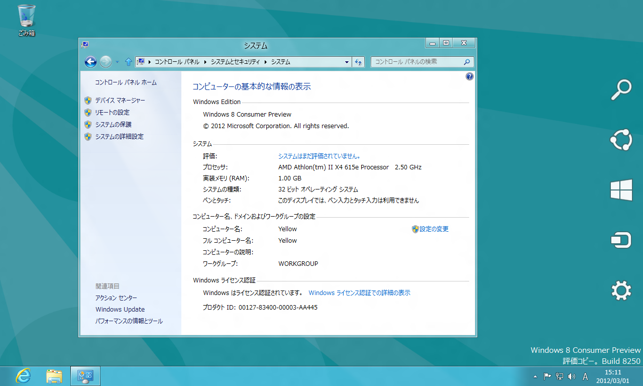 触った感想として、Windows8はほぼWindows7と同等の機能のようです。