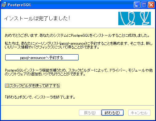 インストーラ作業は、以上で終了です。