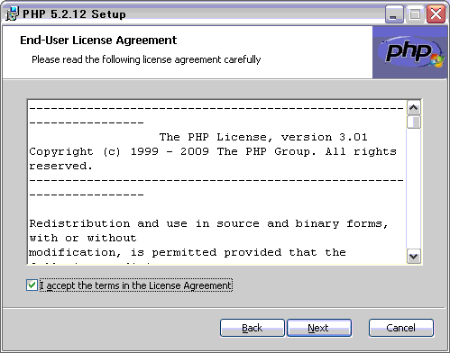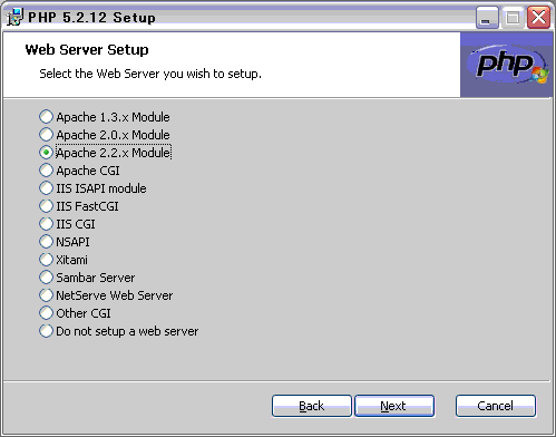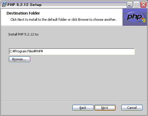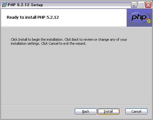こちらから、PHP 5.2.12 installerをダウンロードしておきます。