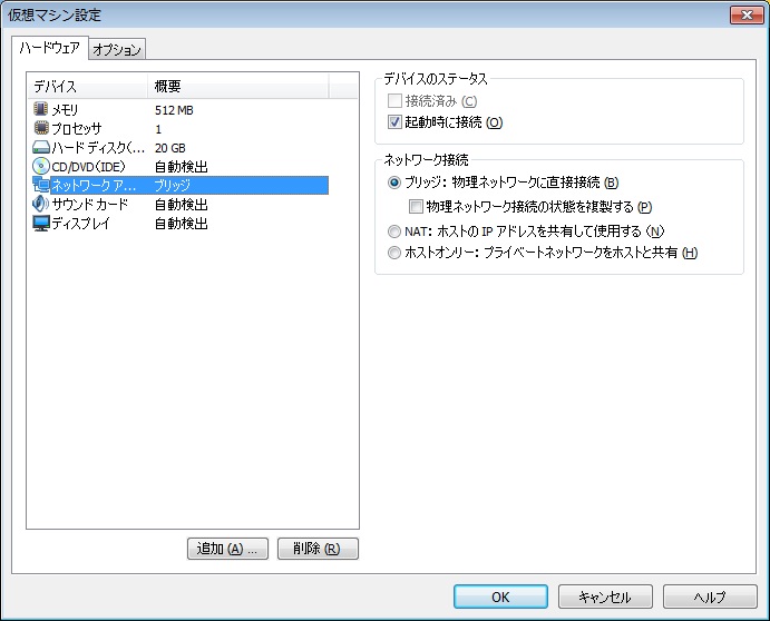 | インストール開始まできました。 今回はサポート期間外ということで、 ネットワーク、USB、フロッピーを削除し、 極力外界から切り離しています。 |