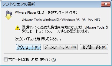 | VMWare Toolsのダウンロード画面です。 もちろんダウンロードします。 |