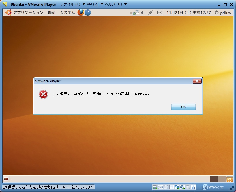 | 「この仮想マシンのディスプレイ設定は、 ユニティとの互換性がありません」 この画面が出て、 ユニティに切り替わりません。 |
