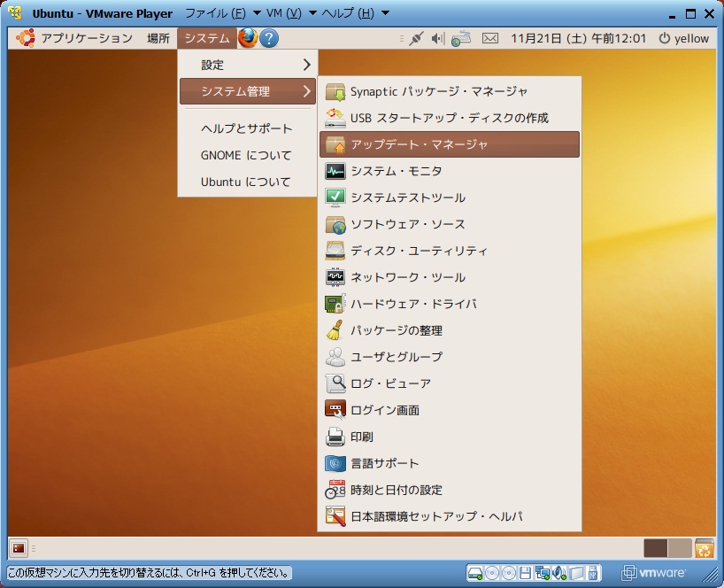 本稿ではubuntu9.10日本語remixCDをvmware上へ導入します。