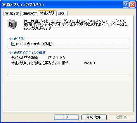 以下、XPで休止する際の手順です。(XP SP3導入済み環境で確認しています。)